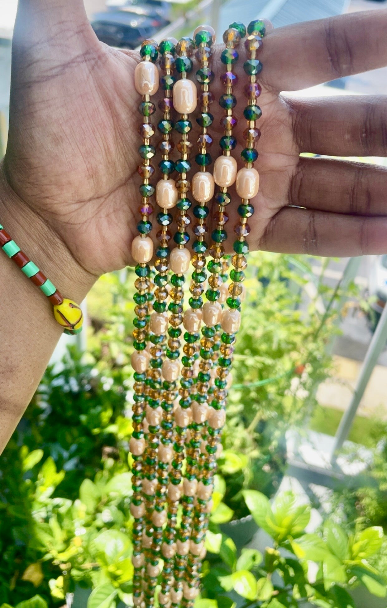 Earth Goddess waistbeads embody grounding, abundance, & divine connection to nature. The earthy nude beads reflect balance, self-love, & rooted femininity, while the shimmering green crystals channel growth, fertility, & prosperity. Golden accents bring in radiance, wealth, & royal energy, completing this strand as a sacred adornment of both beauty & power. Worn around the waist, Earth Goddess reminds you of your connection to the land, your ancestors, & your infinite ability to flourish. 🌍💚👑