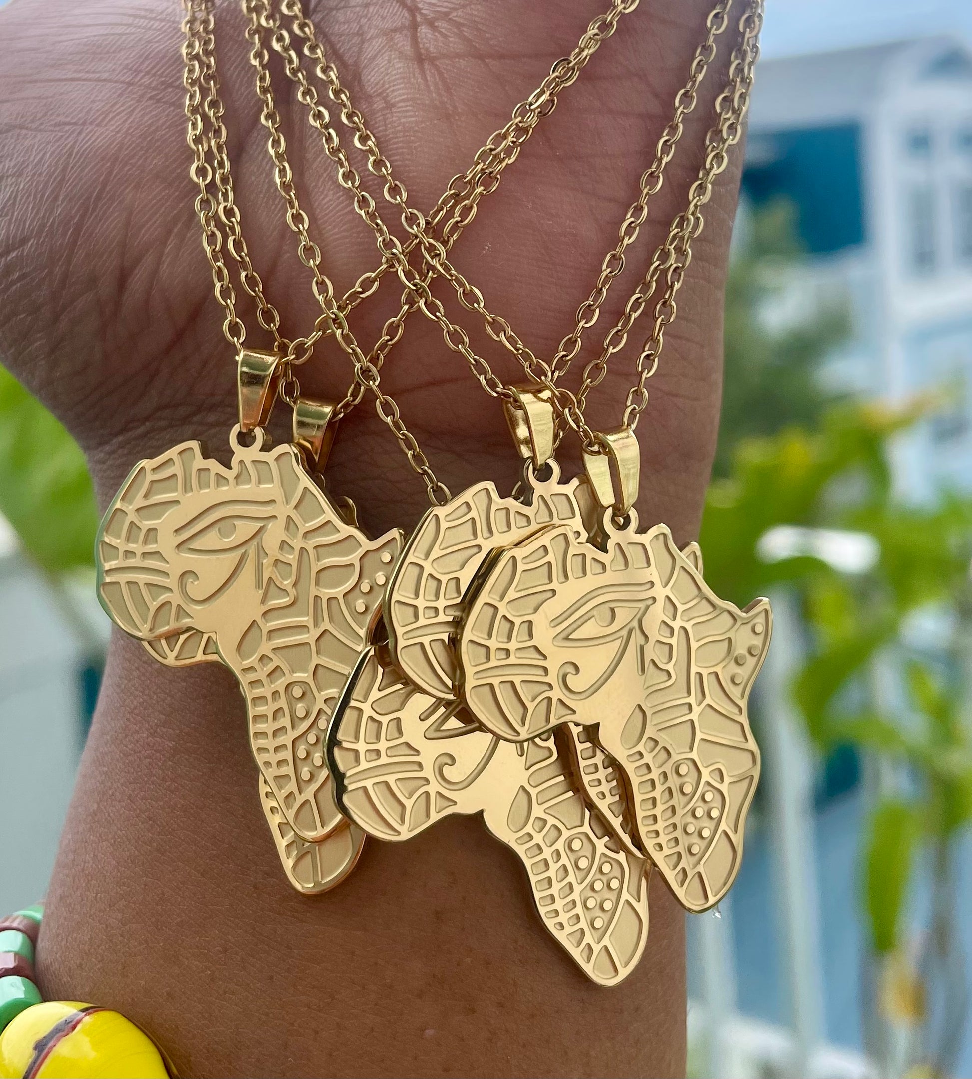 18k gold plated stainless steel Nevklace w/Africa Eye of Horus pendant to add the African aesthetic in a luxury way 💫