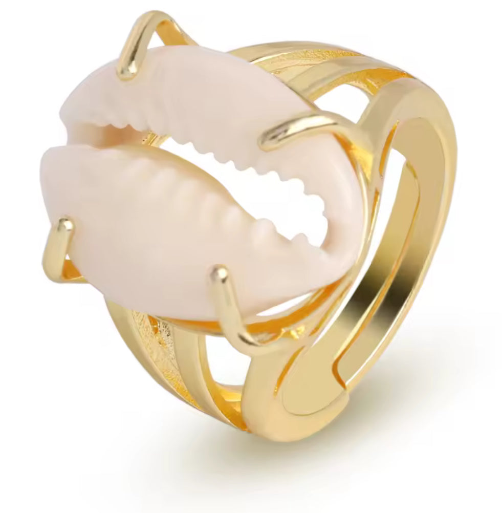 A gold-plated cowrie shell ring that channels divine femininity, ancestral wealth, and womb power — made for a goddess. 💫