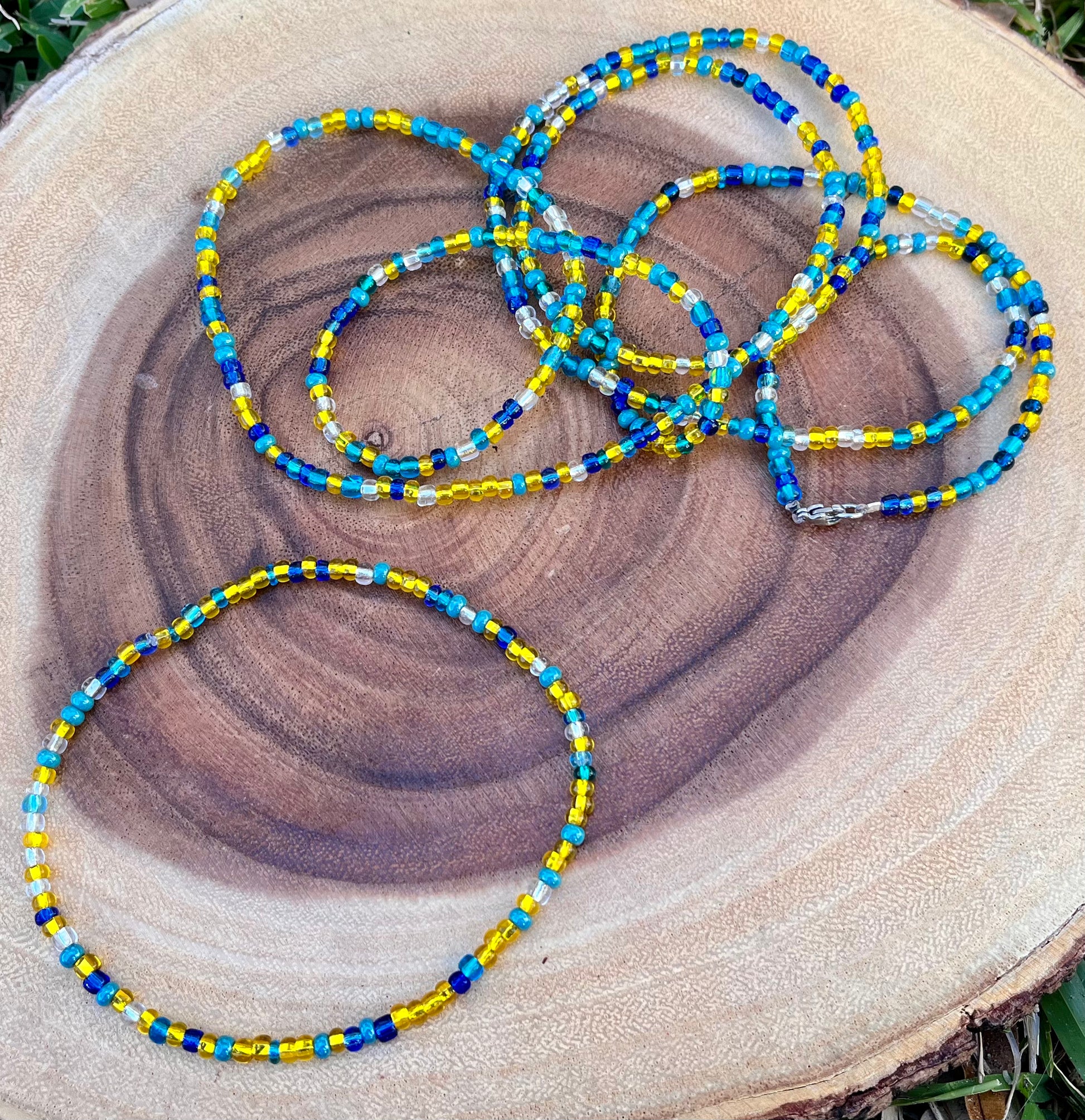 Jah's Simple Waist Crown is a waist adornment created with a variation of colored glass beads. Colors hold intention, & intention brings manifestations.
