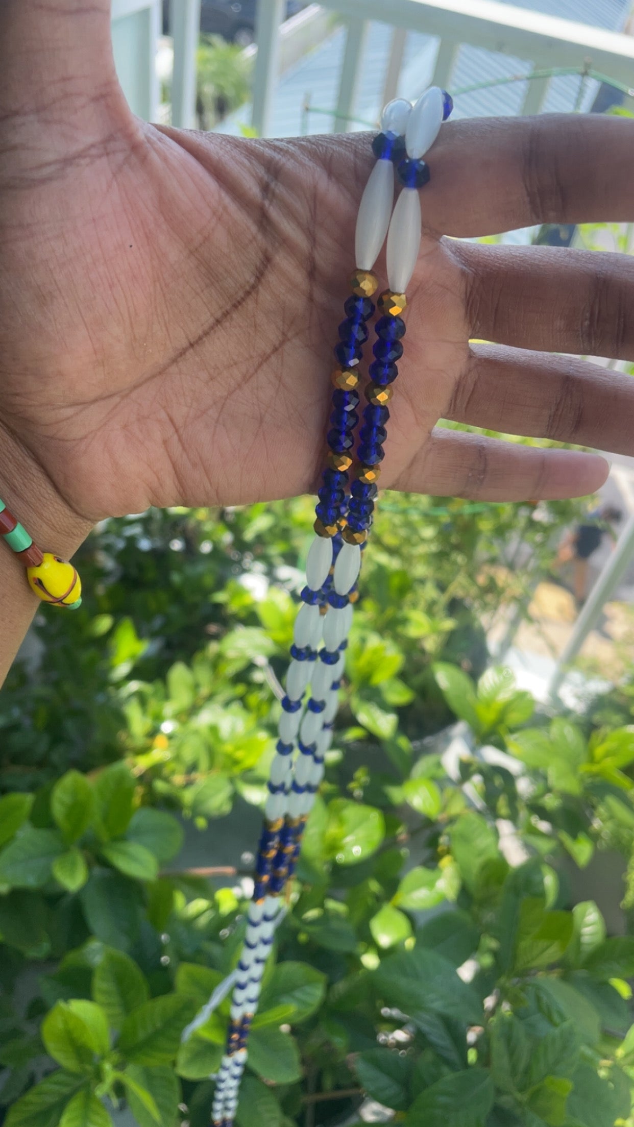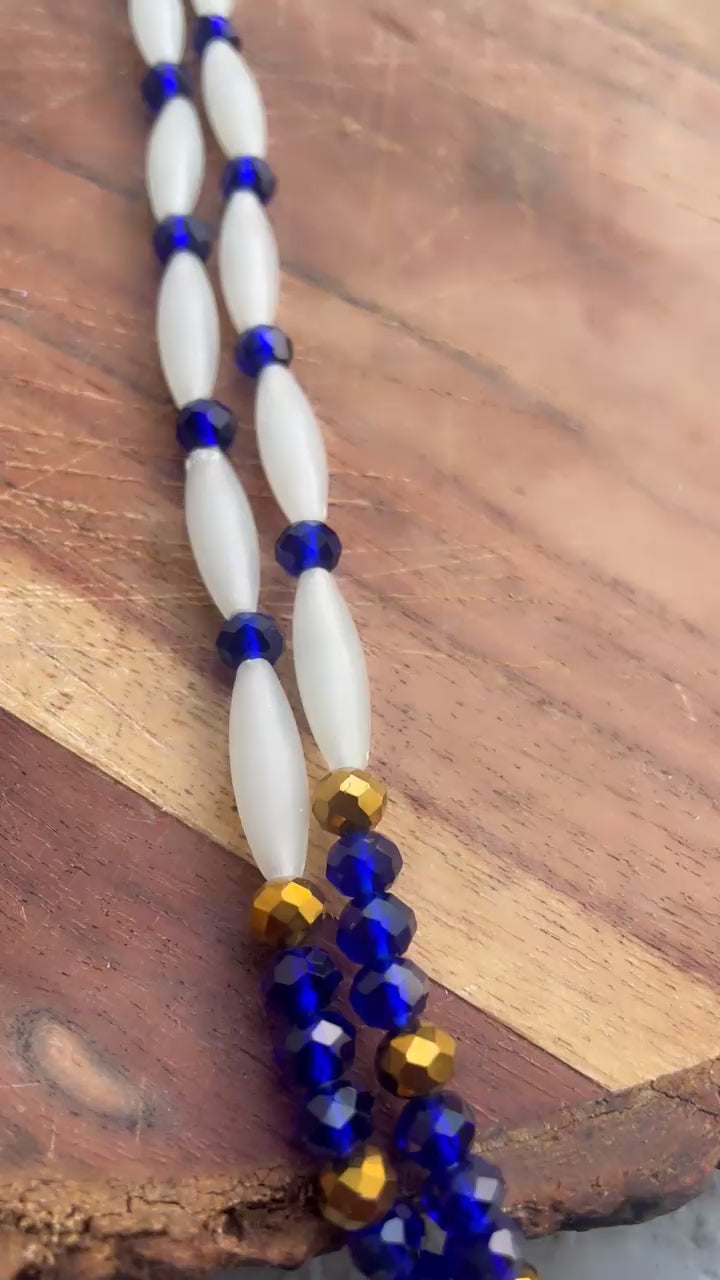 🤍The white beads represent purity, intuition, & moonlit waves, while 💙 the deep royal blue beads channel protection, wisdom, & spiritual depth.