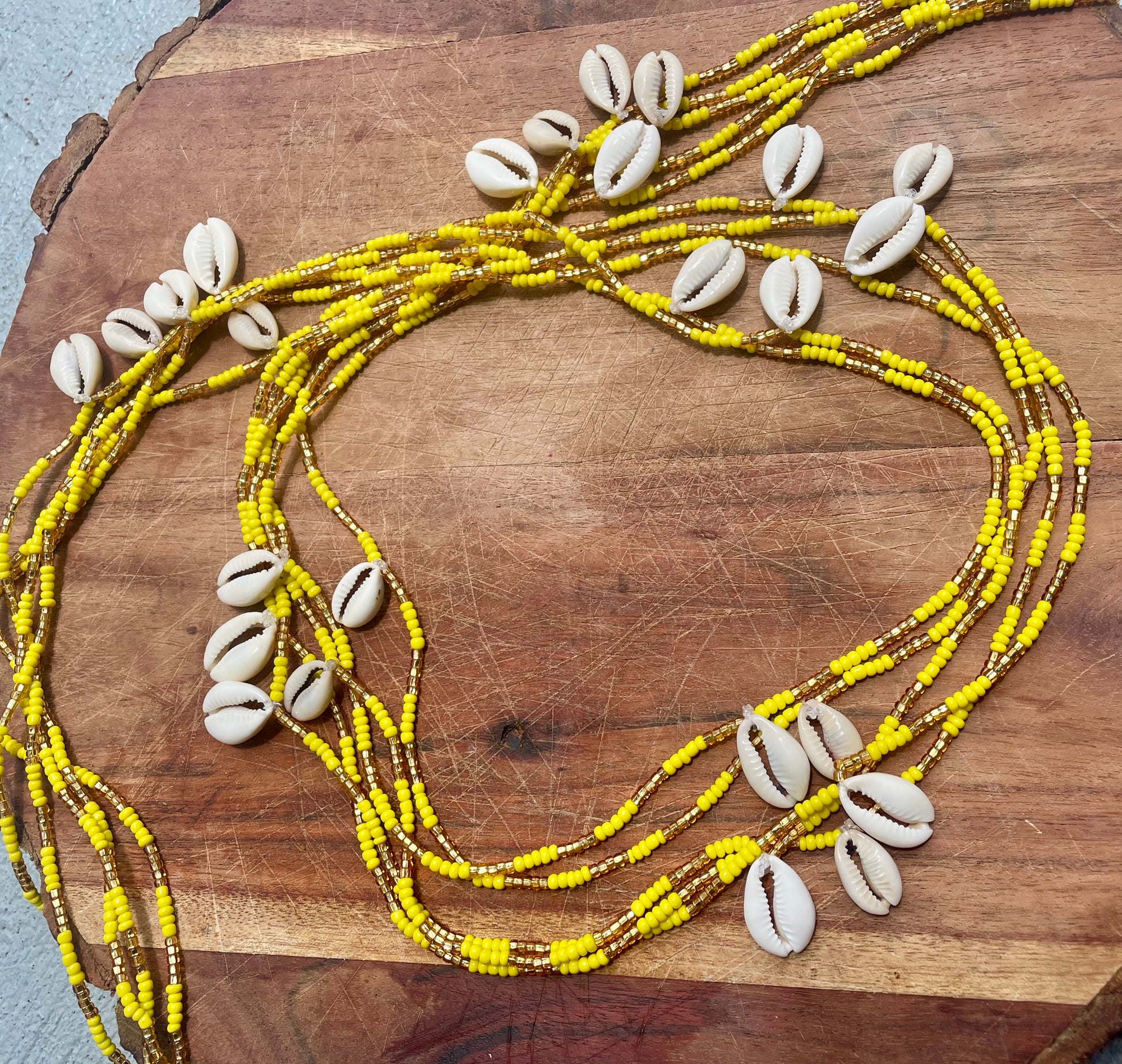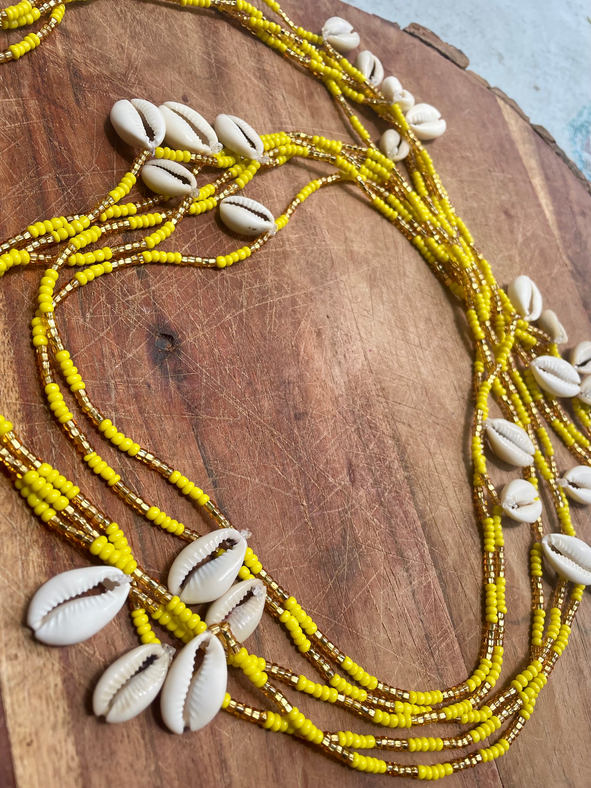 โจ๐ These Oshun-inspired waist beads radiate the energy of wealth ๐ฐ, beauty ๐ธ, and divine feminine power ๐. Strung with vibrant yellow ๐ and golden beads โจ, accented by sacred cowrie shells ๐, they embody the sweetness ๐ฏ and flow ๐ of Oshunโs river. Wear them as a reminder that abundance is always flowing to youโprosperity ๐, love โค๏ธ, fertility ๐ฟ, and joy ๐ป are your birthright.